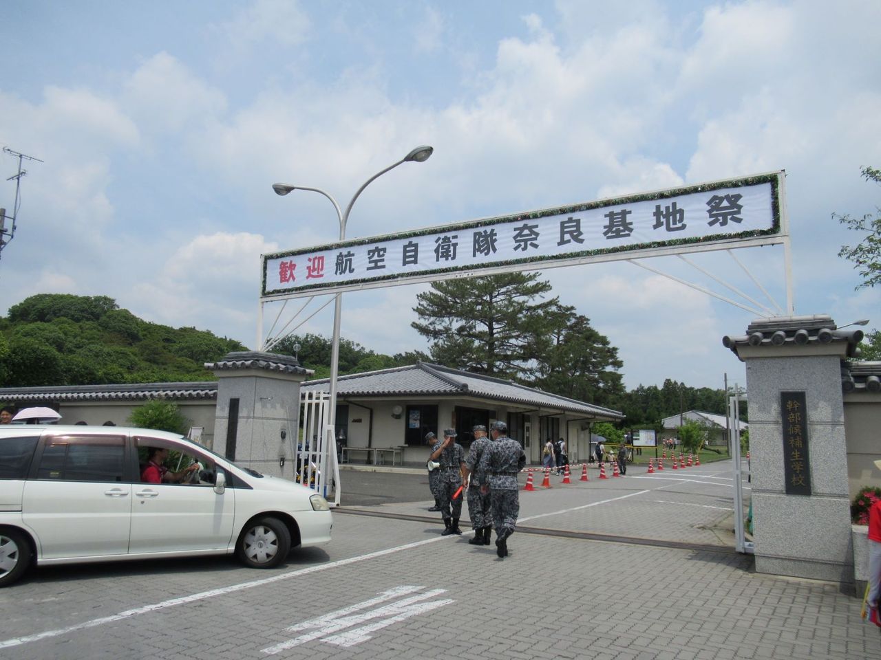2019年6月1日(土)「第24回・奈良観光ラン~奈良公園の端から端と戦闘機と監獄」を開催しました。集合場所を前日に変更したことにより、バタバタしながらのスタート。朝は薄曇りだけど予報は晴れ。平城宮跡の北側で第一次大極殿をバックに集合写真を撮り、そのまま東へ向かってランニング! 一年に二回くらいしか中には入れない自衛隊にすぐ到着。駅から近く、また平城宮跡のすぐ近くにあることを市民でもあまり知りません。