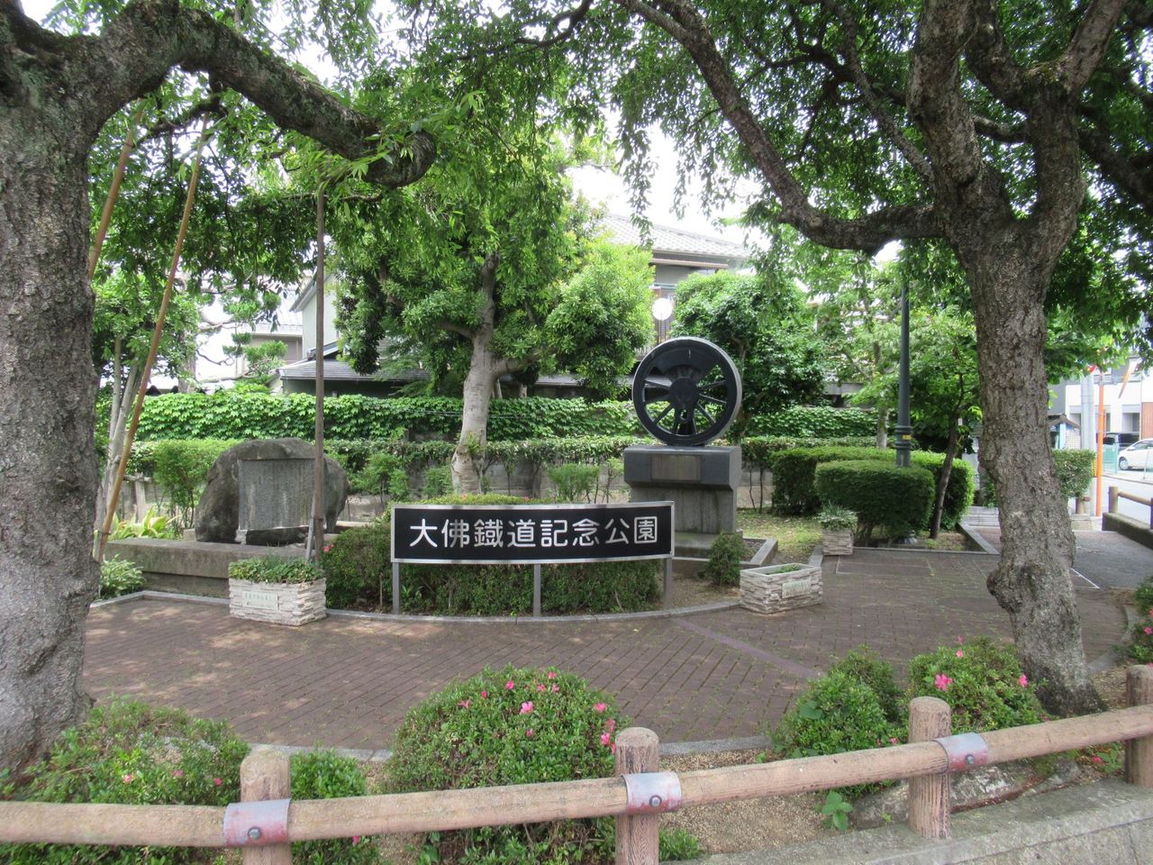 途中にある「大佛(だいぶつ)鉄道記念公園」。ほんの一時期だけ、赤い蒸気機関車が走っていたそうで、その跡地を巡るハイキングコースも最近では有名です。「ここは公園になる前は消防署だったのよ」と地元から参加の人の声。よく考えれば今日の参加者9人中5人が奈良市内の人です。私のイベントでは珍しく多い確率です。水分補給してすぐ出発。信号で止まったら「あれ?ここ見たことある!」という声。それもそのはず、奈良マラソン、スタート直後の坂を下りきった辺りで、「やすらぎの道」です。横断して少し走ると「奈良女子大学」の中へ入ります。