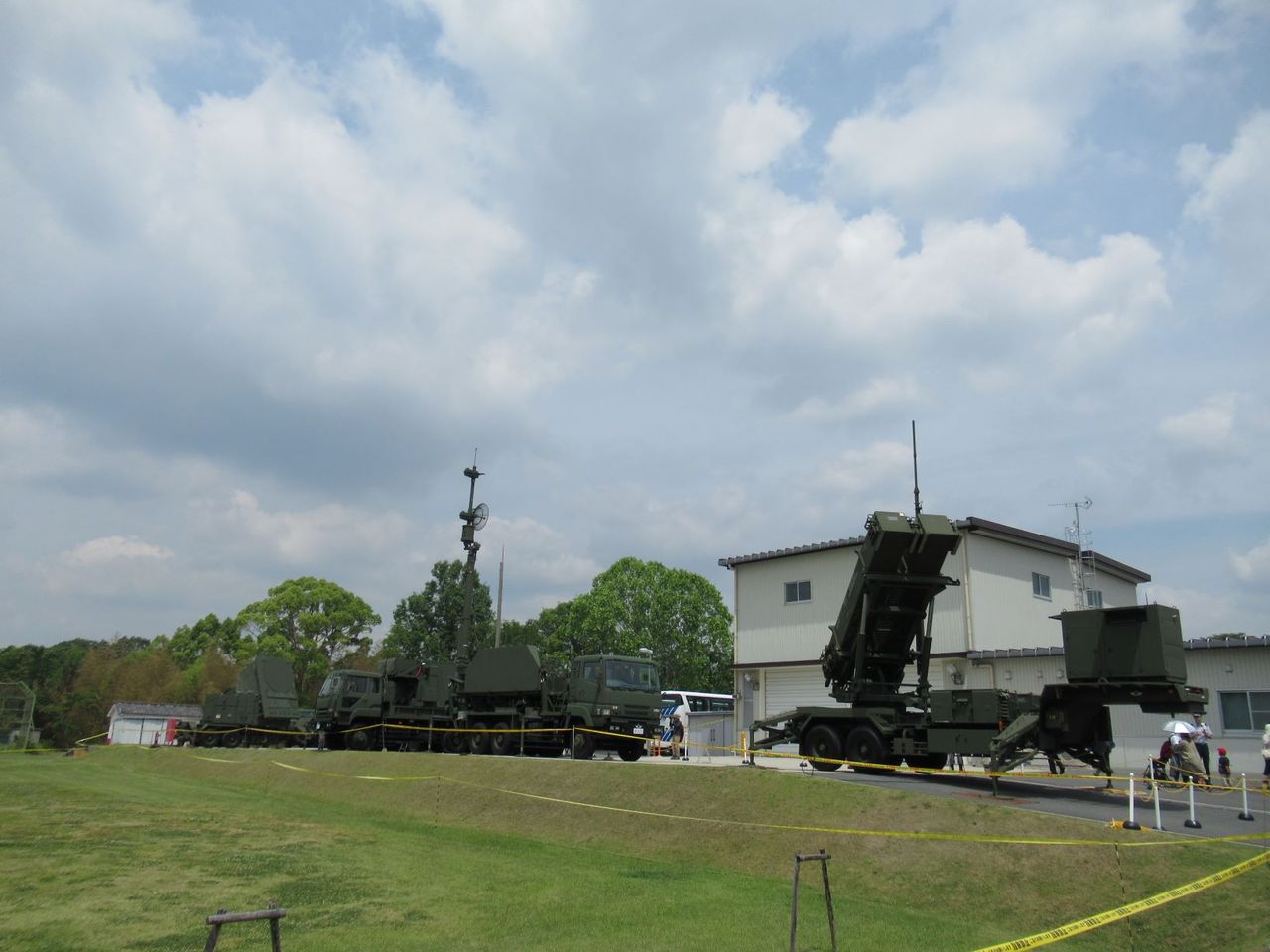 たくさんの種類が展示されていました。右端に見える車両にPAC3弾を乗せて打つそうです。自衛隊員に普段接することがまったくありませんが、「これは何ですか?」などと尋ねると丁寧に教えてくれました。すれ違うたびに「こんにちは!」と声もかけてくれます。入口の歓迎の文字が頭をよぎりました。自衛隊の中では20分間の自由時間にしたけど「時間短すぎ!」って言われながら集合して次を目指します。