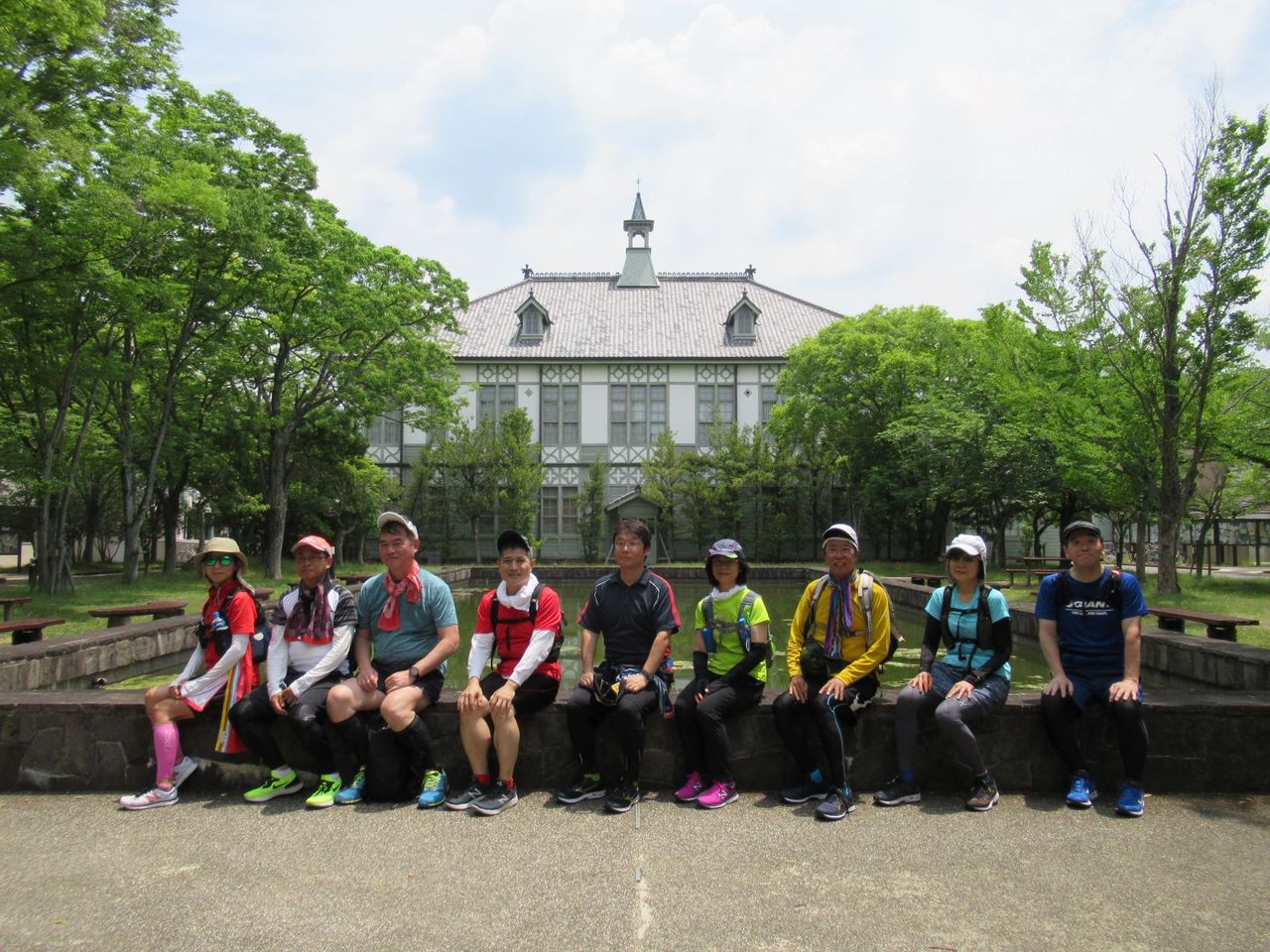 大学内は歩いてぐるっと回って外へ出ると、次の近代建築向かって北へ走ります。その手前には「多聞城跡」があるのですが、今は学校になっていて城跡らしきものは何も残っていません。道はどんどん上り坂。走力の違いから遅れる人も出ますが、長くはないのですぐ到着。