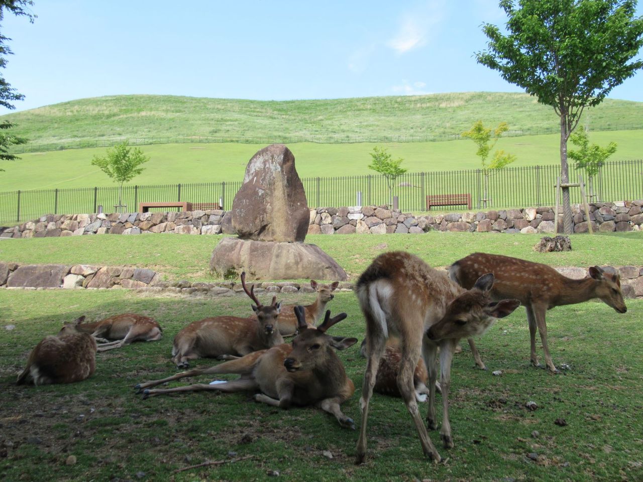 鹿苑を出ると、大きな空の下、ひろ~い緑いっぱいの飛火野です。