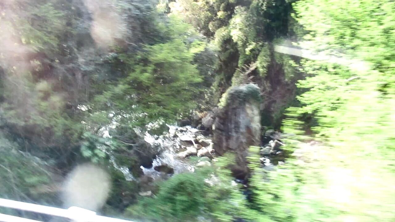 この辺りは走るというより、歩いて移動している。上に上がれば「元山上口駅」があり、その横には「勧請綱(かんじょづな)」が川にかかっている。今年1月に新しく架け替えられたそうだ。川の真ん中にとてつもなく大きな岩石が立っているのに、伸びてきた木々によって年々見えなくなってきた。できれば切ってほしい(最後に車窓からの写真あり)。