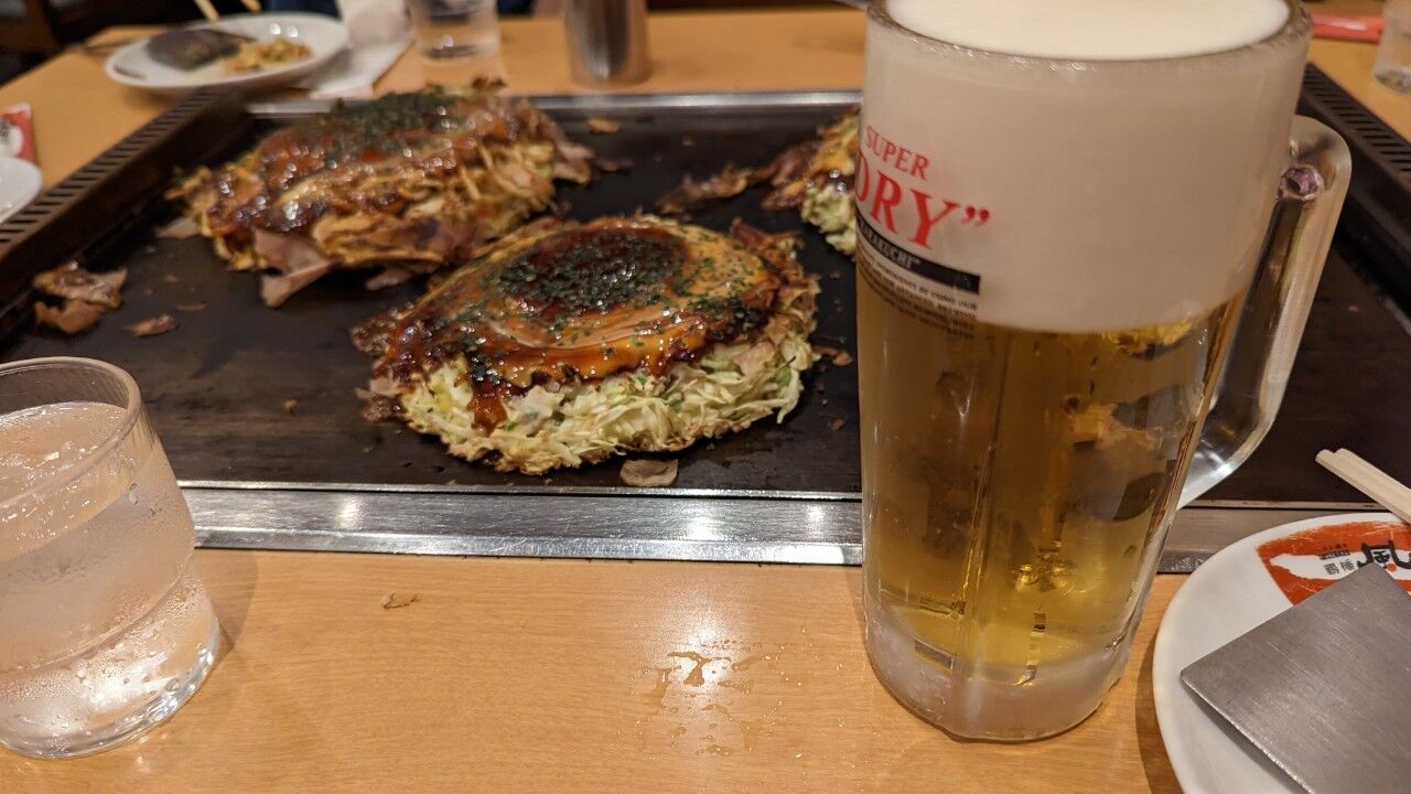 大和川を渡って「王寺駅」でゴール。一人ずつ感想を喋って解散。「走り足りない」と言って、そこからまだ走って行く人もいたが、有志だけでランチへ。お好み焼き「風月」で桜並木を振り返り、走る喜びを語らい、堪能した一日だ。