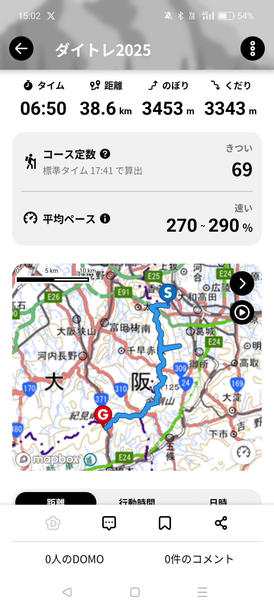 第51回大阪府チャレンジ登山大会「トレランの部」に参加して完走しました。