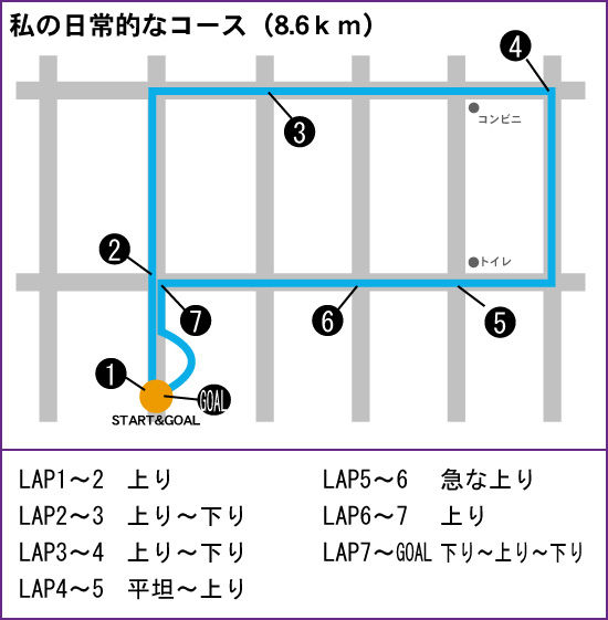その交差点を通過する時に手元のLAPをひとつ押すようにしました。