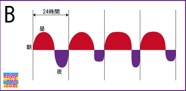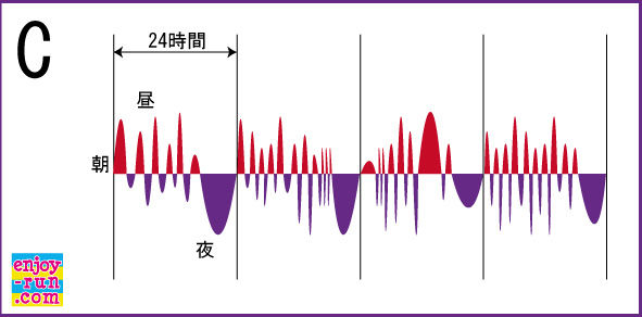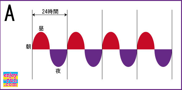 一日のリズムが、このように綺麗な正弦波で過ごすということは、
