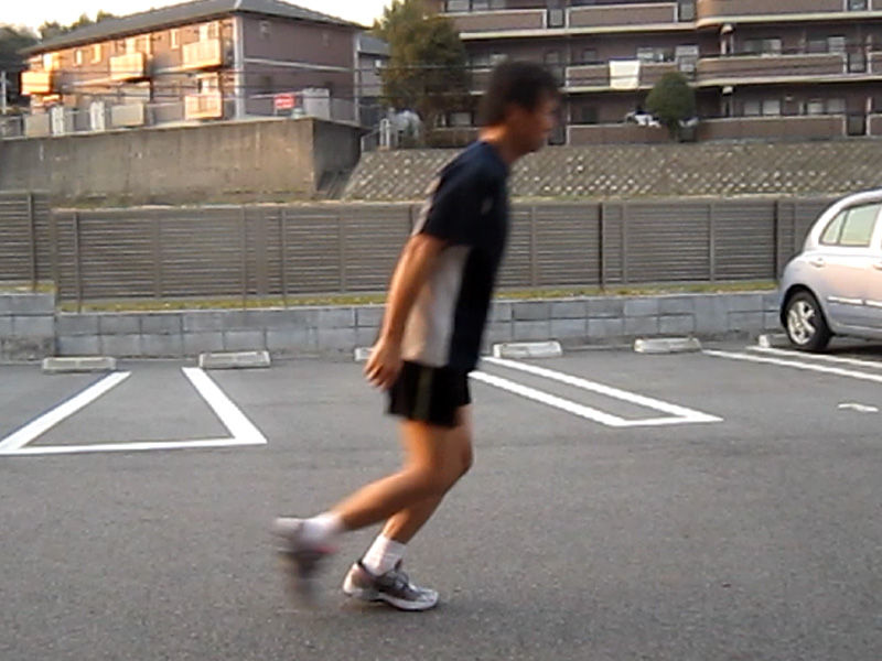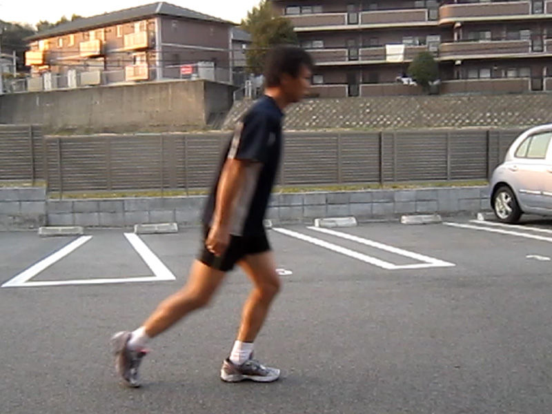 キロ5~6分程度のスピードで膝を前へ出すと、