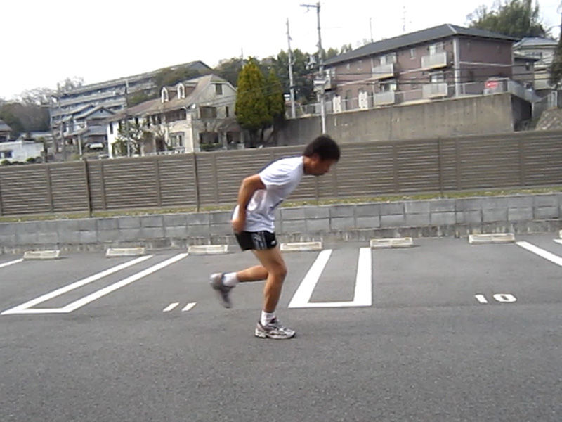 感覚さえつかめば、走りながらそのまま体勢を起こしていって下さい。