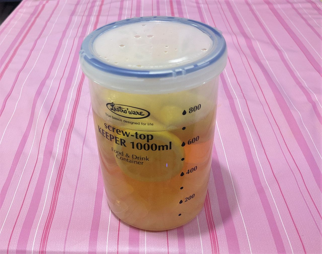 この原液の作り方は、私の考案ではありません。料理研究家の村上洋子さんのページを見てそのまま作ってみました。こちらです→「【村上祥子さん】人気1位 "レモン酢の作り方" 血圧 血糖値を下げる効果 ダイエットにも」